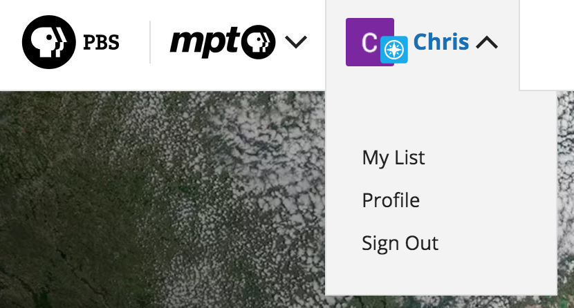 My List is available on the site after signing in with your PBS account. For most browsers, you'll see this option available beneath your name when you hover over your name at the top of the site.